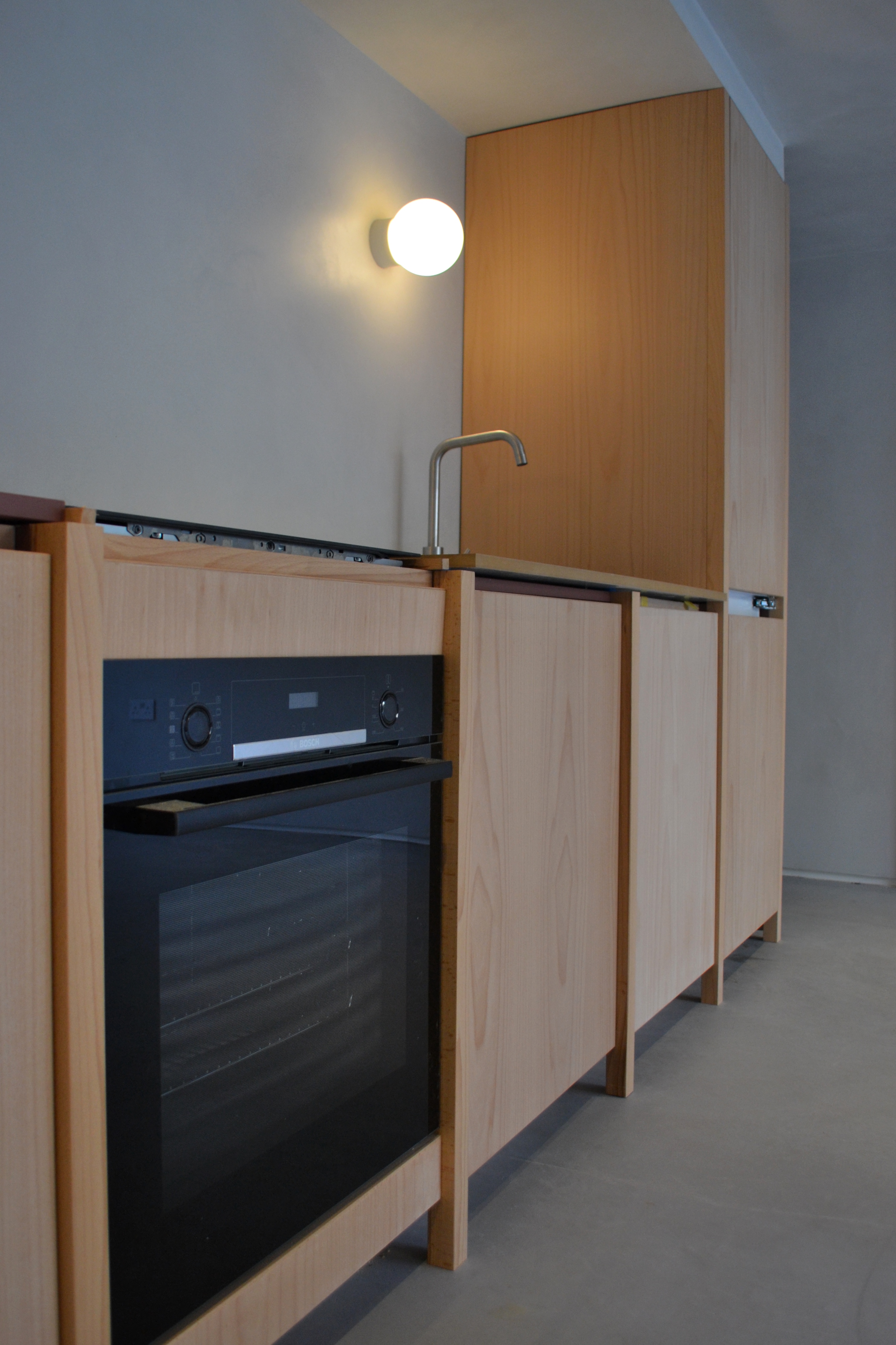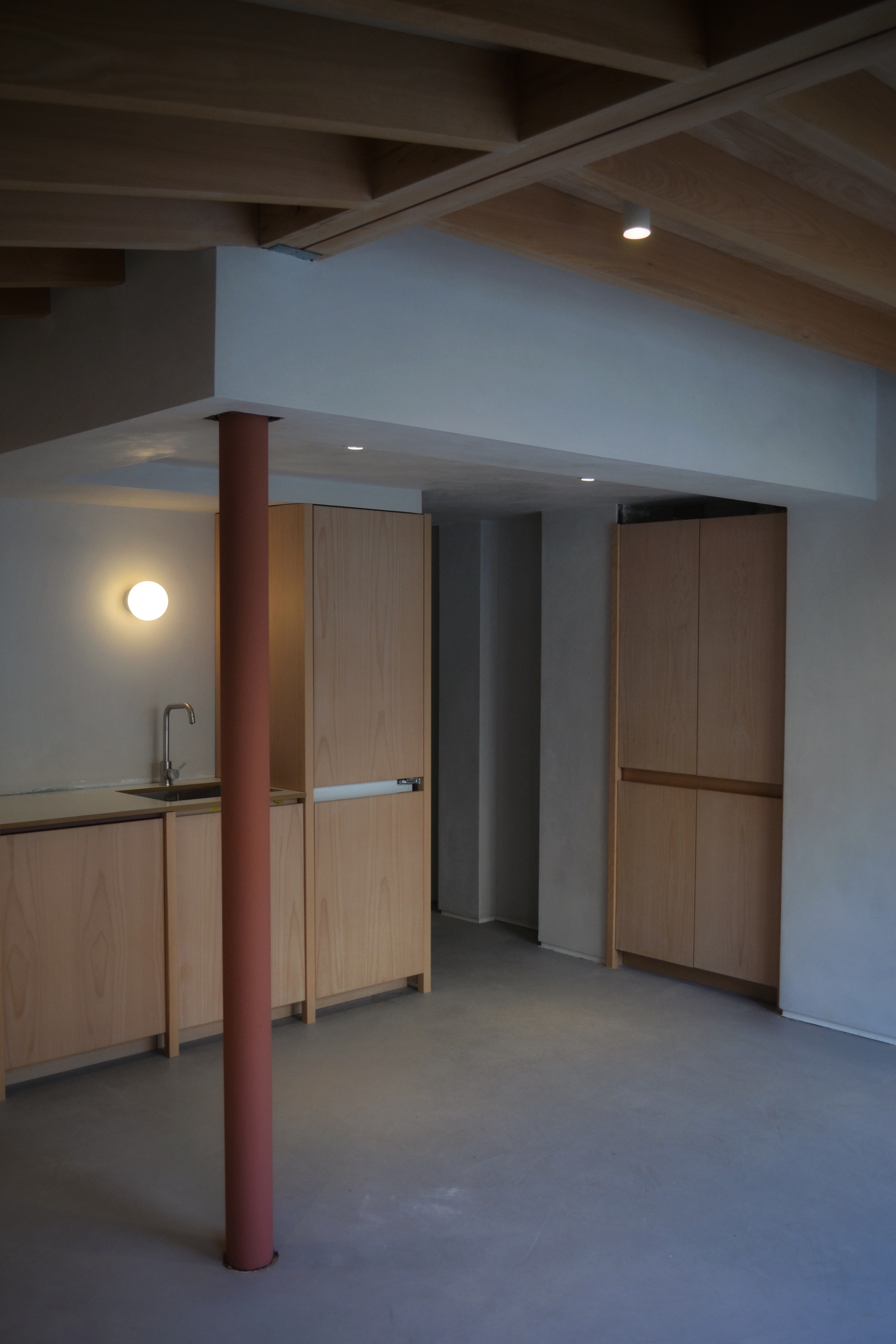 The kitchen and dining furniture were designed and fabricated in-house. Structural beech was specified as the primary material; however, due to the nature of D30-graded hardwood — which cannot be kiln-graded with the same consistency as mass-produced softwood — additional contingency boards were required to allow for potential movement and bowing. Rather than allowing this surplus material to become waste, we integrated it into the wider joinery scheme, designing a bespoke kitchen and dining table that celebrated the character of the timber. Every component was carefully re-milled and finished in our South London workshop.